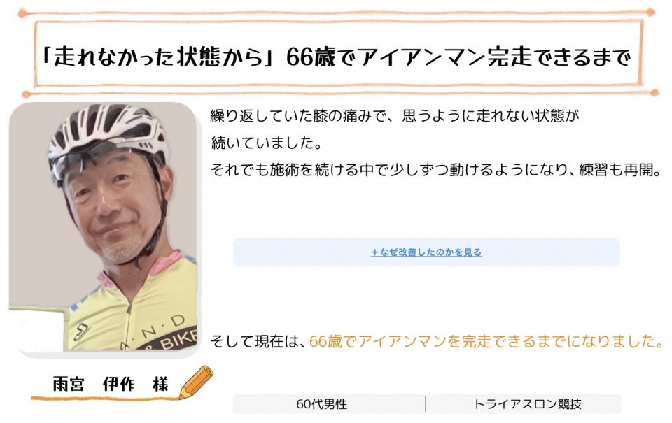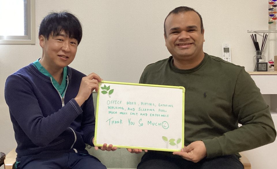今ではテニスや仕事、散歩も楽にできるようになり、楽しむことができます。先生を強くお勧めします。
