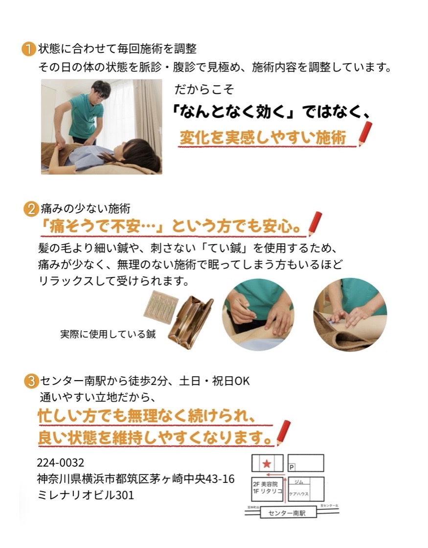 鍼を刺しっぱなしにする施術ではないので、鍼が苦手な人にも自信を持って勧められます。