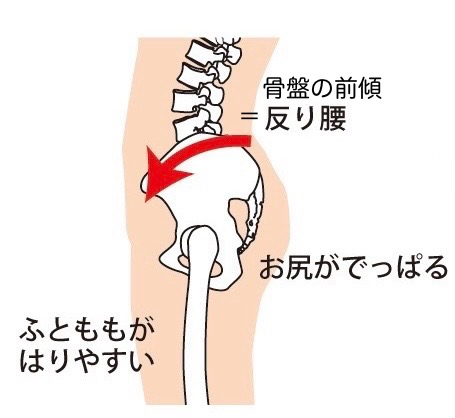 裏ももの筋肉(ハムストリングス)は骨盤に付く筋肉なので収縮すると骨盤を後ろに引っ張ってしまいます。