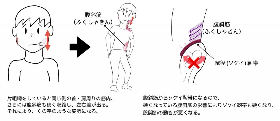 なぜ片咀嚼がソケイ部に影響する?またその他にも影響が?