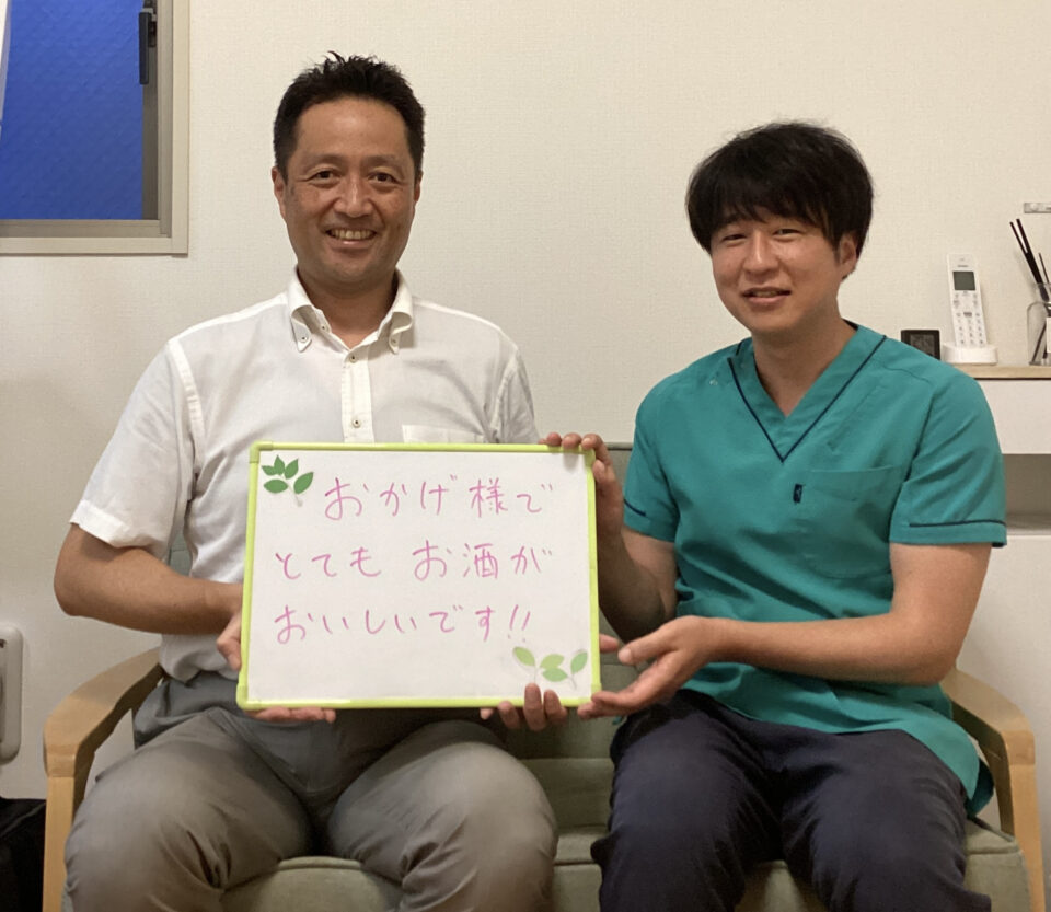 不調が現れている箇所だけでなく体全体のケアについていつもわかりやすく的確に教えてくださるので、とても助かっています。おかげでいつまでもおいしいお酒をたっぷりと楽しむことが出来そうです。これからもよろしくお願いします(^^)