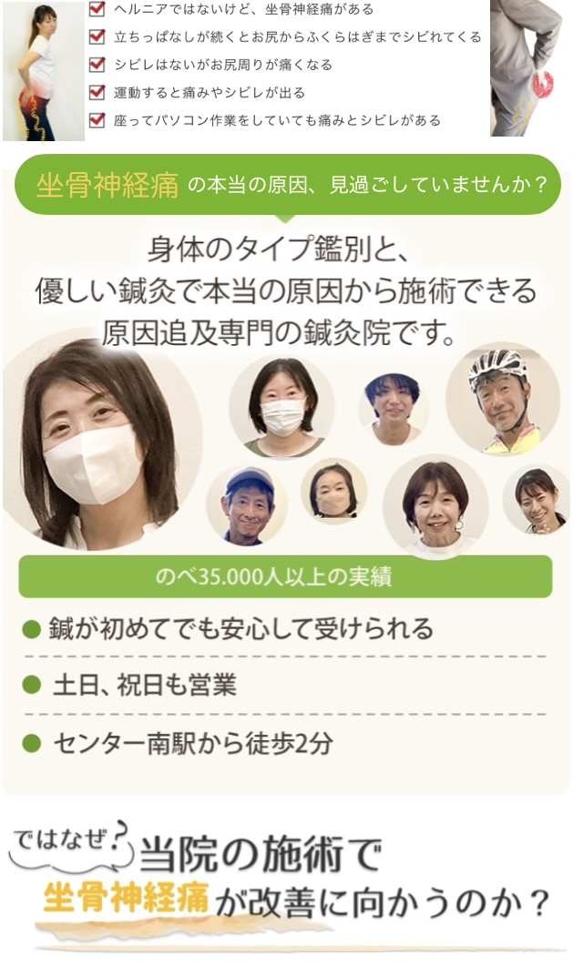 坐骨神経痛の症状が長引いていたり、繰り返している場合は、このようなタイプ別の原因を鑑別し、施術することで解決の糸口が見つけることができるかもしれません。