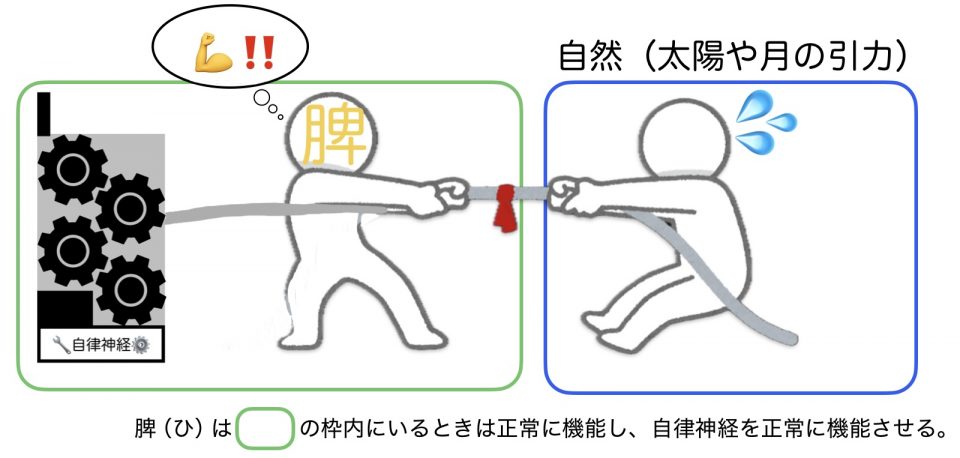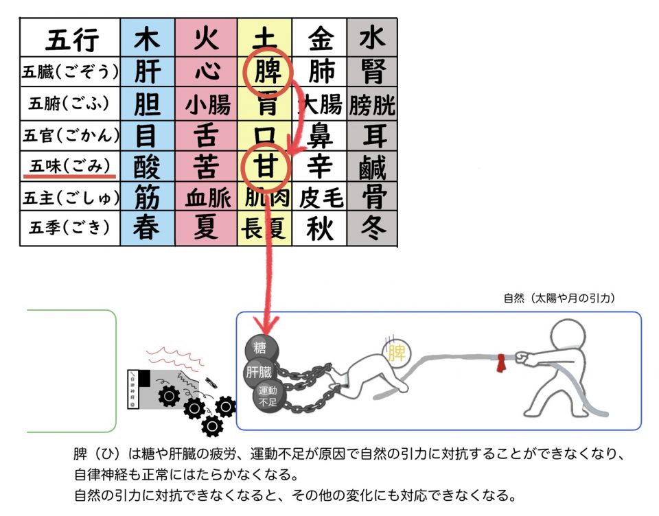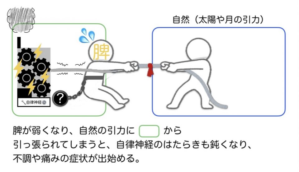 その綱引きを担っているのが、東洋医学の五臓のひとつである「脾(ひ)」(消化器系の機能を意味する)というところです。