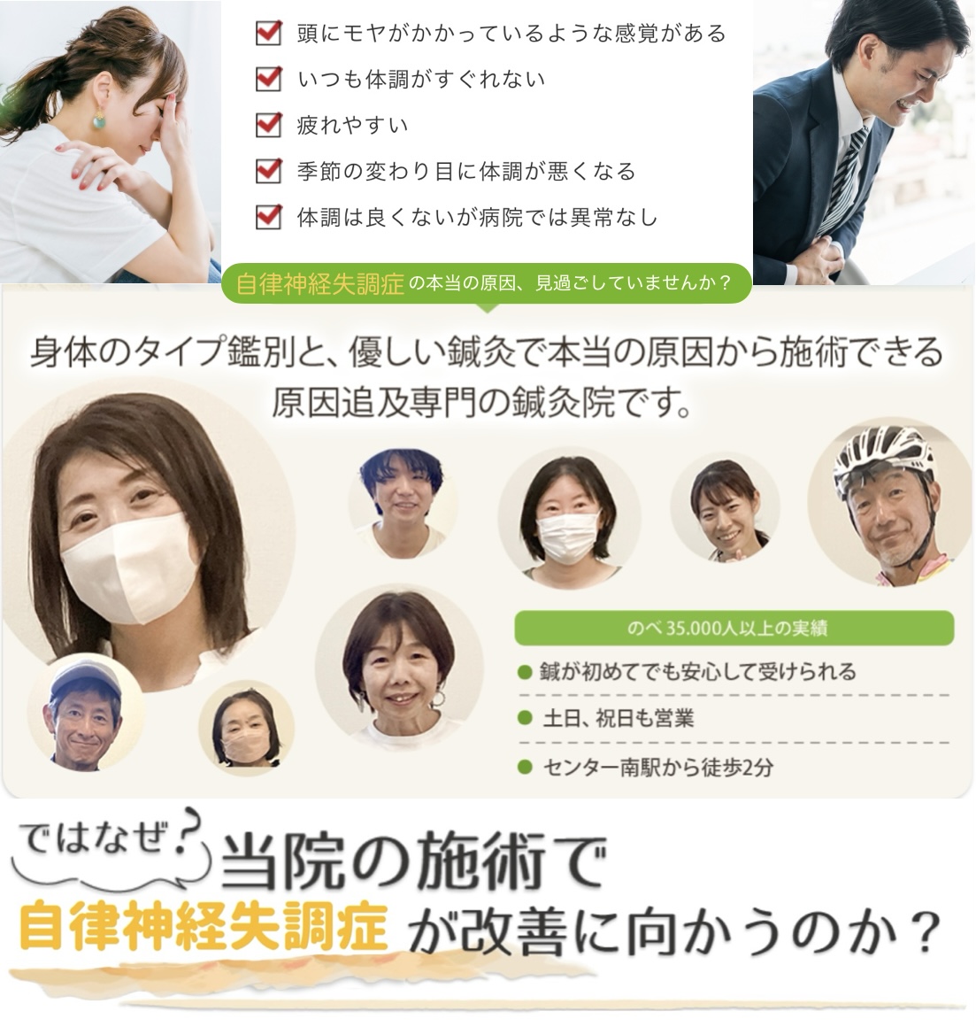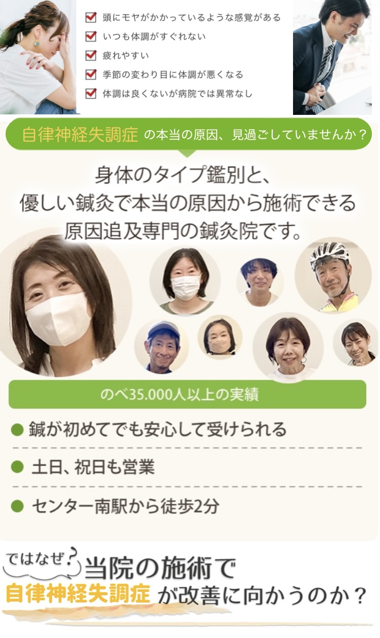自律神経の乱れによる症状が長引いていたり、繰り返している場合は、このようなタイプ別の原因を鑑別し、施術することで解決の糸口が見つけることができるかもしれません。
